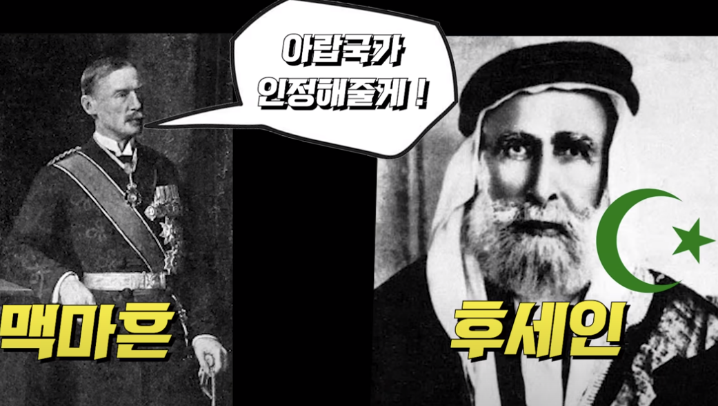 영국은 지금의 팔레스타인 지역을 포함한 중동지역에 아랍사람들의 독립된 국가 수립을 약속 했고, 아랍인들은 그 약속을 굳게 믿었습니다. 결국, 아랍인들은 오스만제국에 대항하여 싸워주면서 오스만제국에 큰 타격을 주게 됩니다.