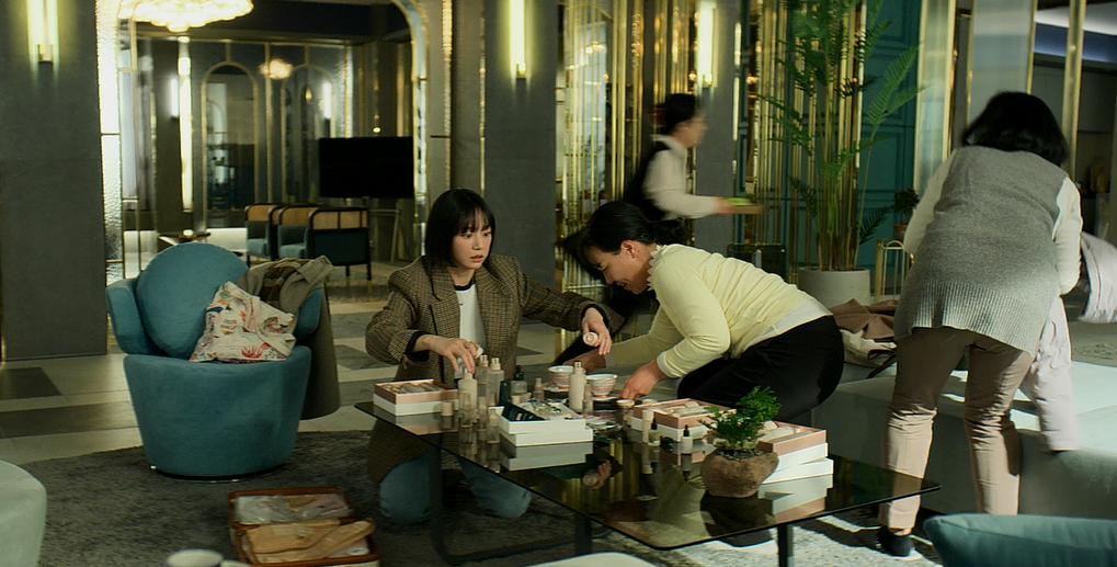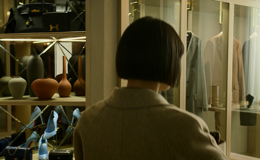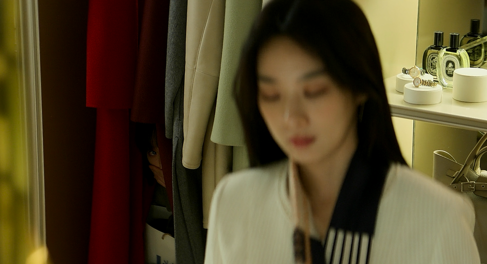 부자집에서 화장품을 판매하고 있던 중 그 집의 사모님이 도착하게 되고 다행히 위험한 순간을 넘어가게 됩니다. 옷장에서 나온 서아리는 화려한 장신구와 빽을 보면서 감탄하며 몰래 부자집을 빠져나옵니다.